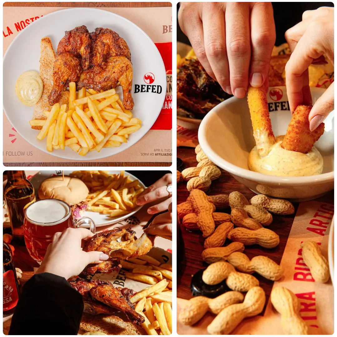 Cibo che mette tutti d’accordo: Galletto alla brace, ribs e burger grandi porzioni, grande sorriso.